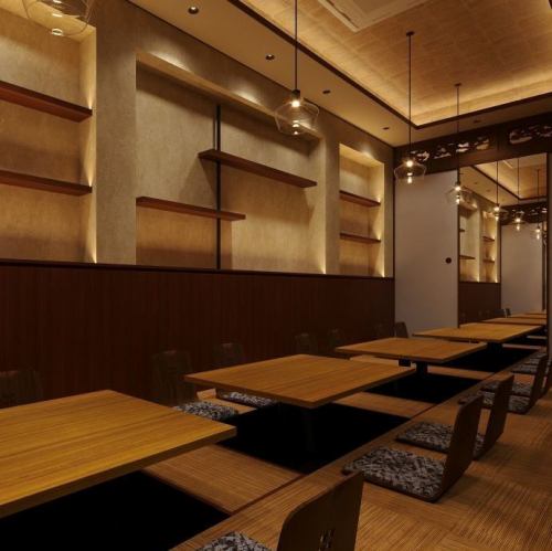 落ち着いた空間で。デートや接待にも!掘りごたつなのでゆったり足を伸ばしてお寛ぎ頂けます♪
